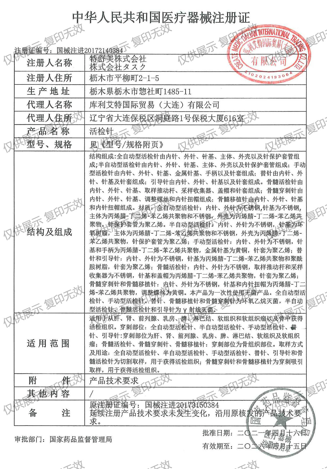 注冊證編號:國械注進(jìn)20172140384